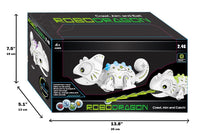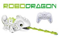 Full function radio control Robodragon with 8 LED lights, 5 sounds, and a tongue that stretches out and picks up magnetic meal tokens. Includes 4 meal tokens, remote control and Robodragon.